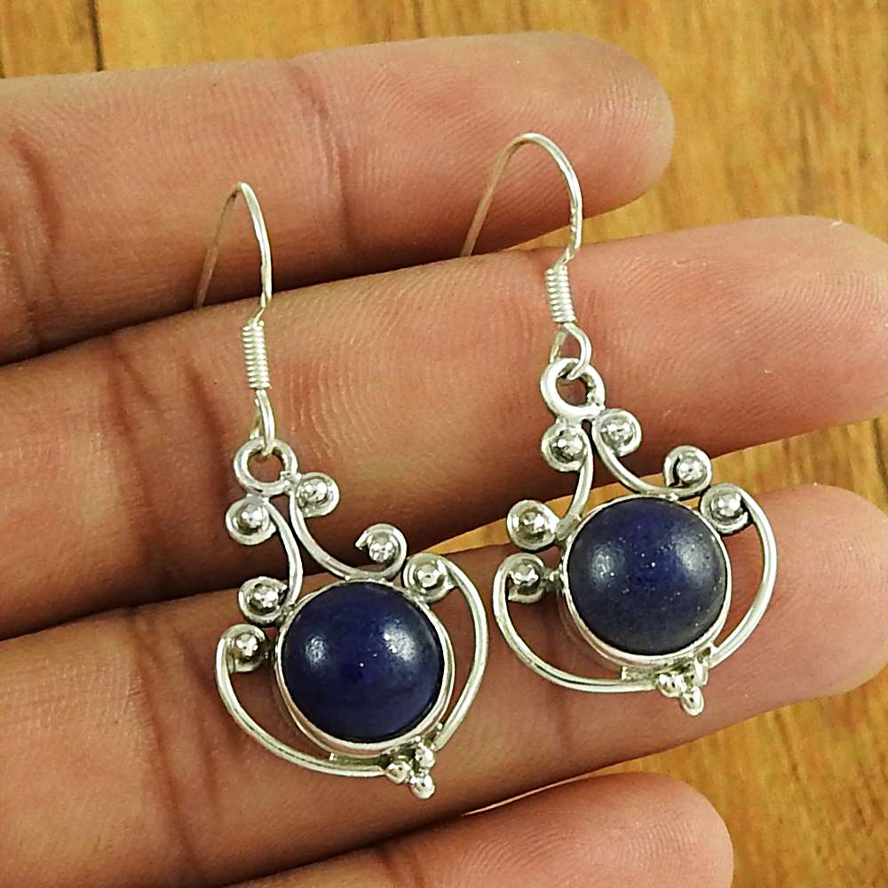 Lapis Gemstone Vintage Earrings 925 Sterling Silver Jewellery