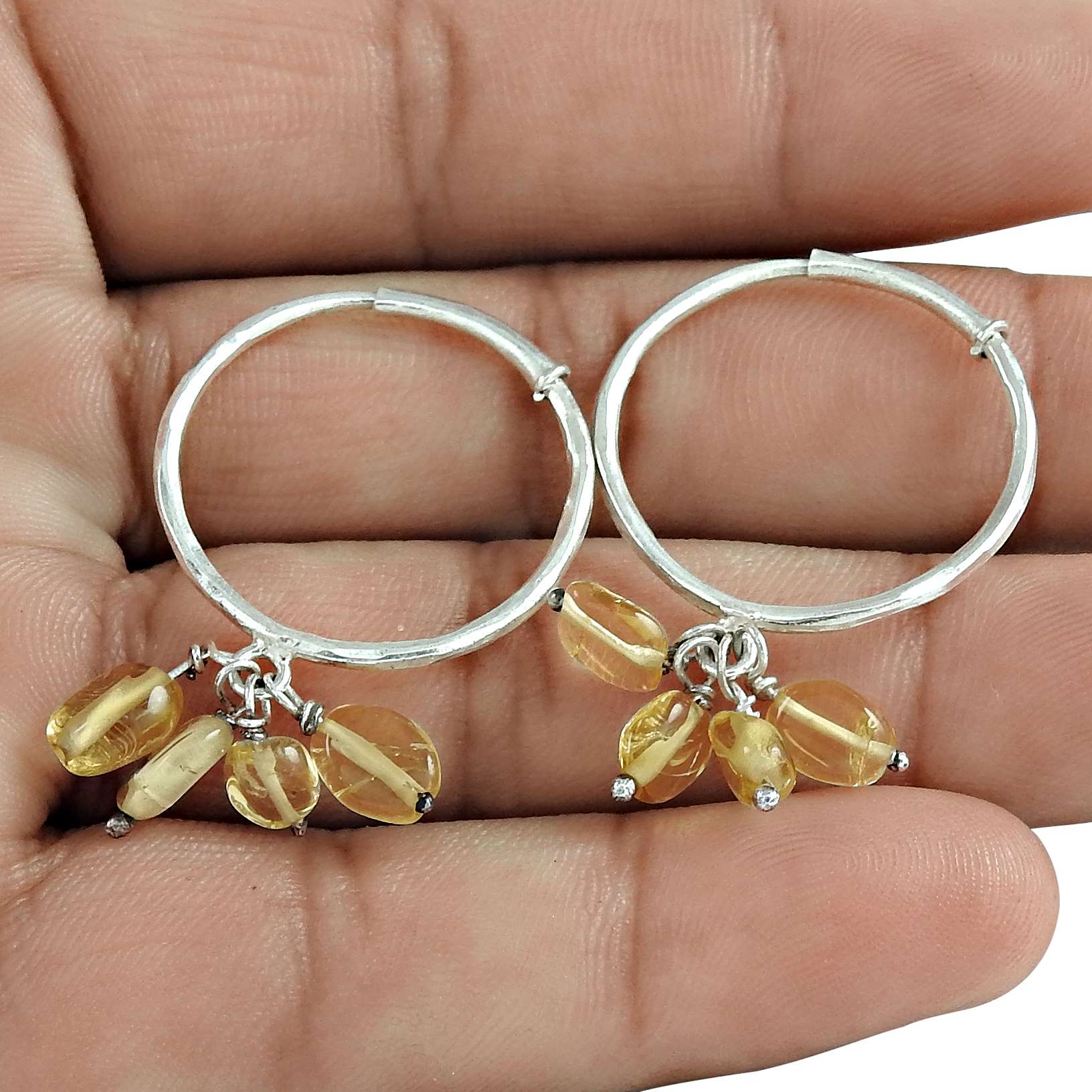 Natural Citrine Gemstone Hoop Earrings 925 Sterling Silver Indian Jewelry V28