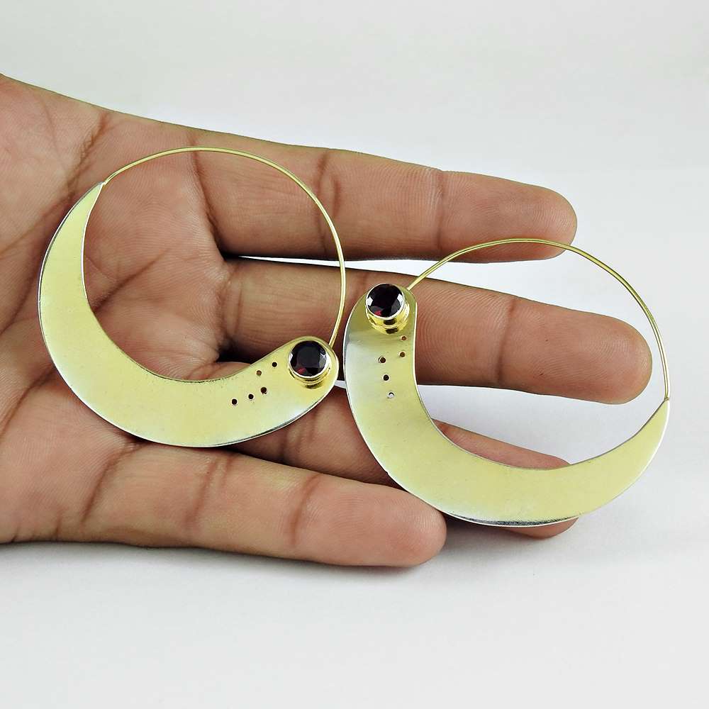 Woman Gift Natural Garnet Dangle Boho Earrings 925 Sterling Silver L7